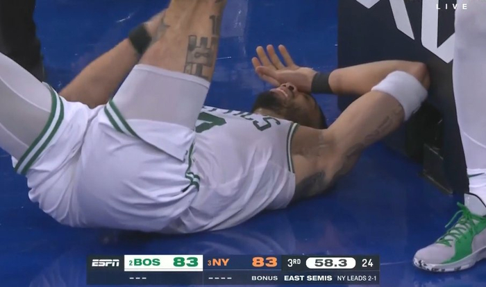 千疮百孔!塔图姆中场左脚踝不舒服 第三节痛苦倒地 末节受伤离场