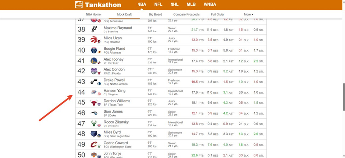 🥰知名网站更新模拟选秀:杨瀚森44顺位被雷霆选中 顺位创新高