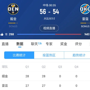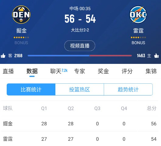 酣战淋漓🥵掘金前两节皆得到28分 雷霆前两节皆得到27分!