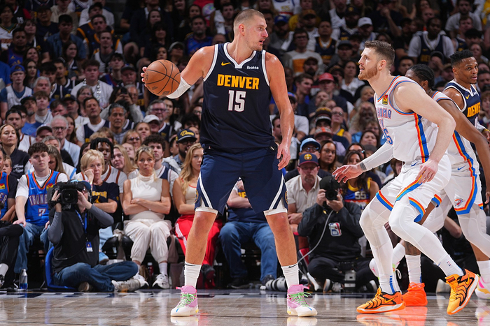 直播吧5月14日讯 NBA天王山大战,掘金上半场以56-54领先雷霆。