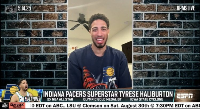 直播吧5月15日讯 今日,步行者后卫哈利伯顿在参加播客节目《The Pat McAfee Show》时谈到了湖人前锋詹姆斯在昨日比赛期间发推对他的称赞。
