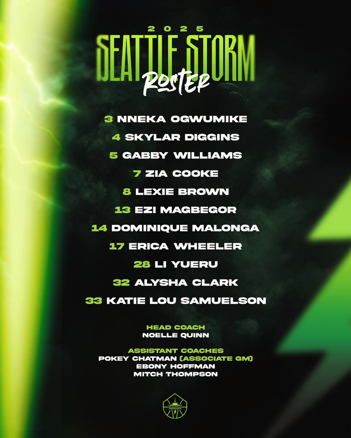 直播吧05月15日讯 西雅图风暴今天官宣新赛季大名单,由于硬工资帽限制,她们只能以11人迎来揭幕战。