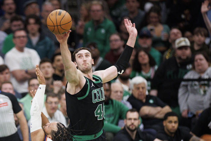 本场比赛,凯尔特人中锋科内特成为奇兵,进攻端吃饼一个不丢,防守端尤其亮眼,各种篮下送盖帽,第三节5封盖帮助球队拉开比分。
