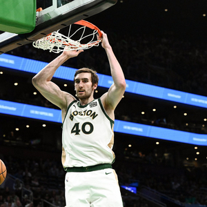 本场比赛,凯尔特人中锋科内特成为奇兵,进攻端吃饼一个不丢,防守端尤其亮眼,各种篮下送盖帽,第三节5封盖帮助球队拉开比分。