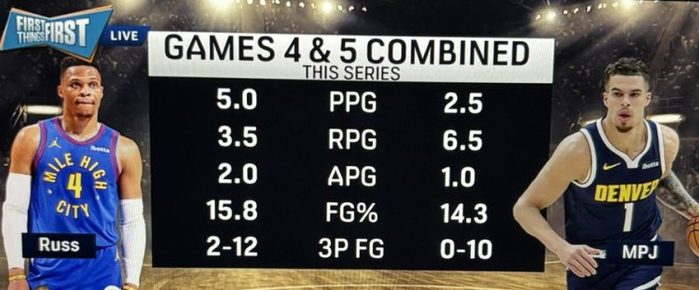 威少过去两场三分12中2&场均仅5分 波特三分10中0&场均2.5分