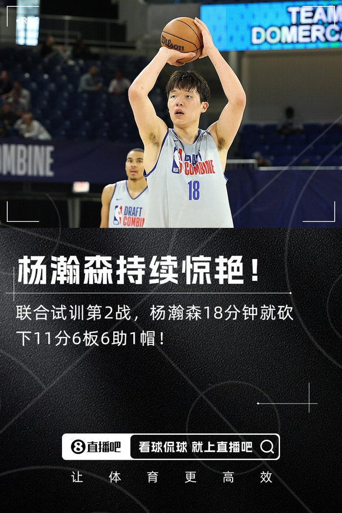 直播吧5月16日讯 NBA联合试训第二日的5V5对抗赛中,杨瀚森所在的Domercant队90-106不敌Williams队。