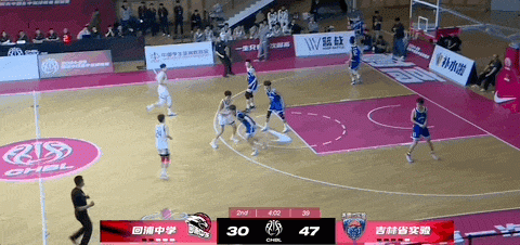 在这里我必须夸一夸回浦中学A组同学的顽强,即便是对面有张博源这样的大杀器,他们还是顶住了:首节AB组换人的时候,比分是9-16;次节AB组换人的时候,比分也只是从原本21-32变成31-46。在天赋完全被对面碾压的情况下,他们总共只输了11分。
