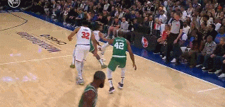 再抖一肩!唐斯弧顶突破一突三 强硬上篮2+1疯狂庆祝!