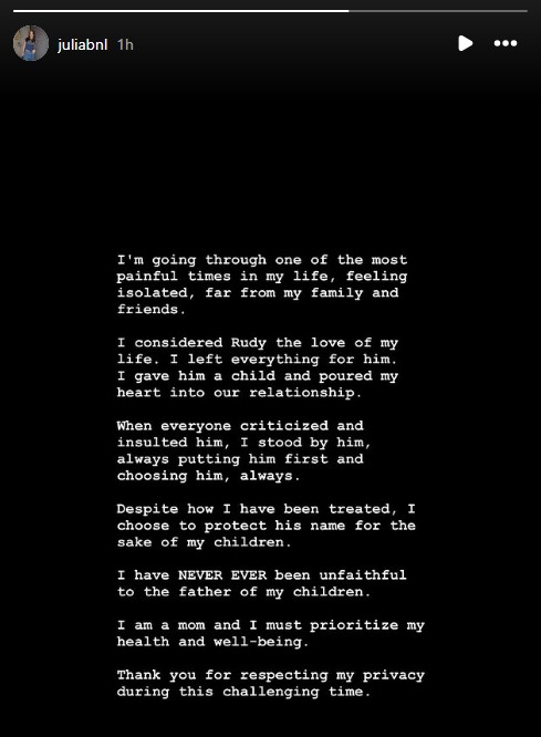 Julia Bonilla在社媒发布声明: