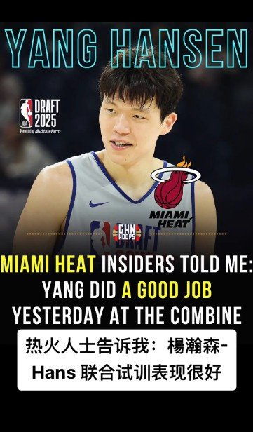 媒体人:热火人士透露杨瀚森联合试训表现很好