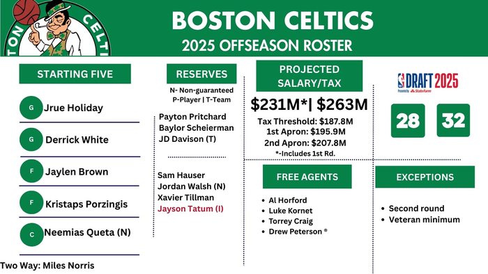 2025-26赛季,绿军预计是2.31亿美元的薪资(一个首轮签的薪资含在内了),远超第二土豪线(2.078亿美元)。