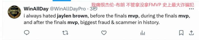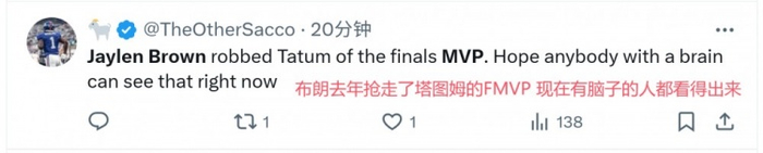 美网友:布朗就像欧文&没能带队赢球 史上最菜FMVP&去年应给塔图姆