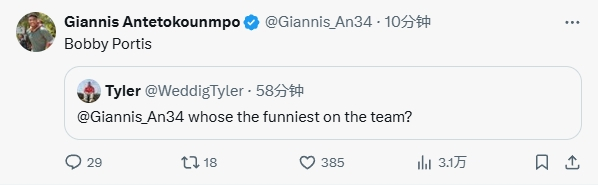 直播吧05月18日讯 今日,雄鹿前锋扬尼斯-阿德托昆博发推回答网友提问。