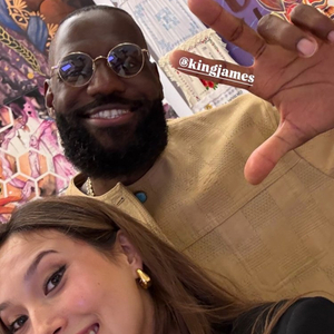 直播吧5月18日讯 今日,中国女子自由式滑雪运动员谷爱凌更新Instagram,晒出她今日在参加洛杉矶的一项活动时与湖人前锋詹姆斯的自拍合影。