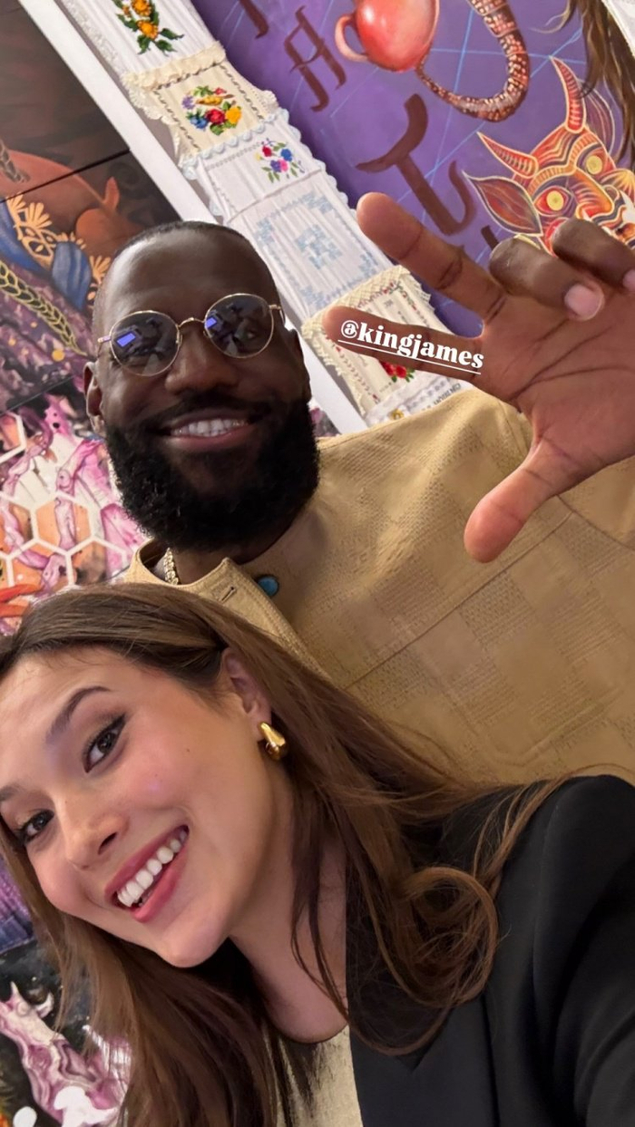 搞怪表情谷爱凌晒今日与詹姆斯在洛杉矶慈善晚会上自拍合影