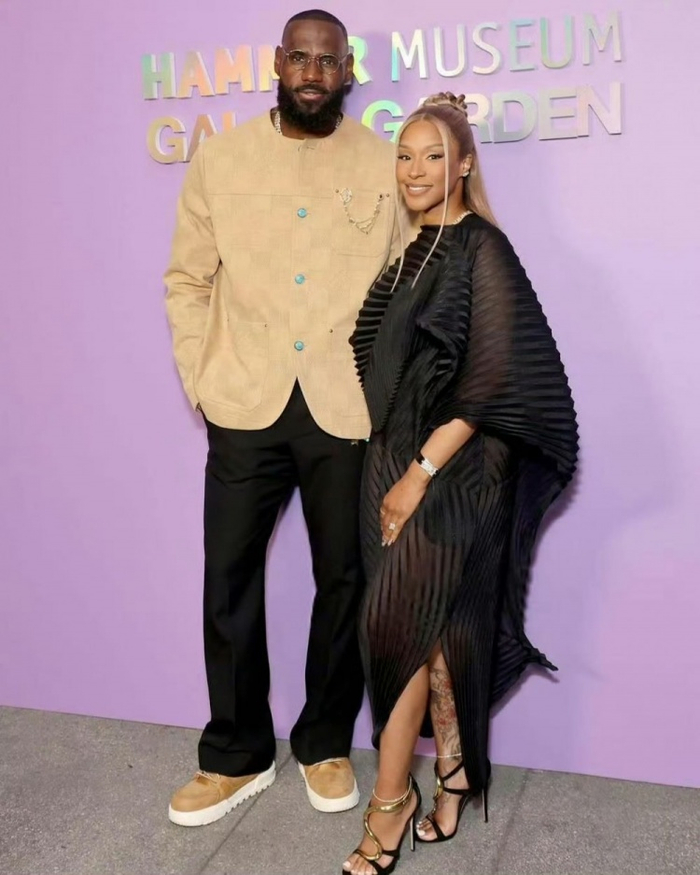 詹姆斯夫妇今日出席了在洛杉矶举行的第20届哈默博物馆年度慈善晚会,詹姆斯的妻子萨瓦娜担任晚会联合主席之一。