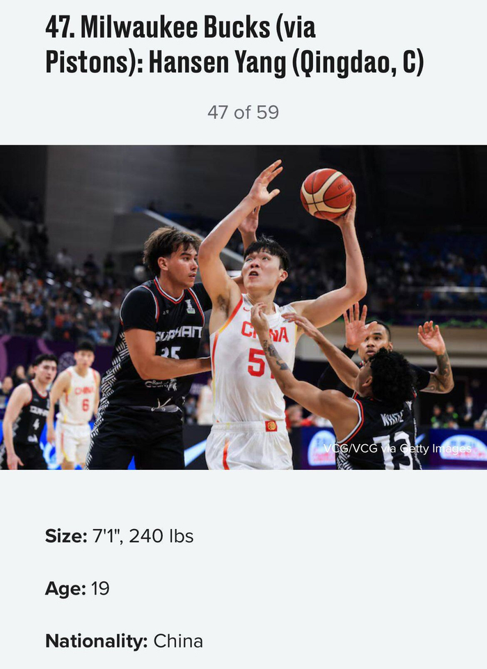 稳住知名美媒更新模拟选秀:杨瀚森47顺位 他是属于这里的人
