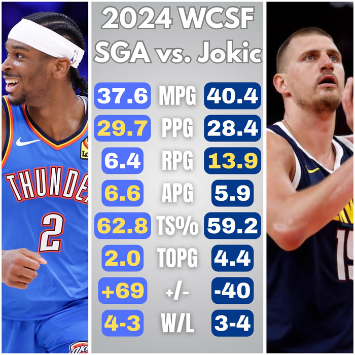 赛后,CBS记者Sam Quinn谈到了两位MVP候选人约基奇与亚历山大本轮系列赛的表现:
