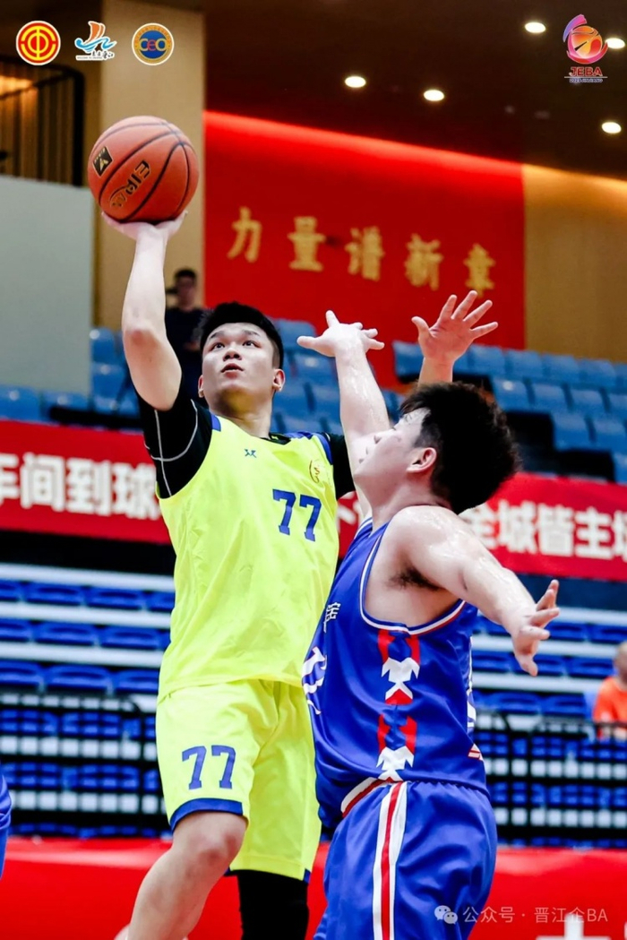 比赛开始,双方就展现出极高的防守强度。永固集团66号王润锋利用经验率先打破僵局,他先是命中一记标志性的中距离跳投,随后又在低位单打中转身勾手得分。晋江机场则依靠团队配合紧咬比分,首节战罢,永固集团以12:13略微落后,王润锋单节砍下6分。