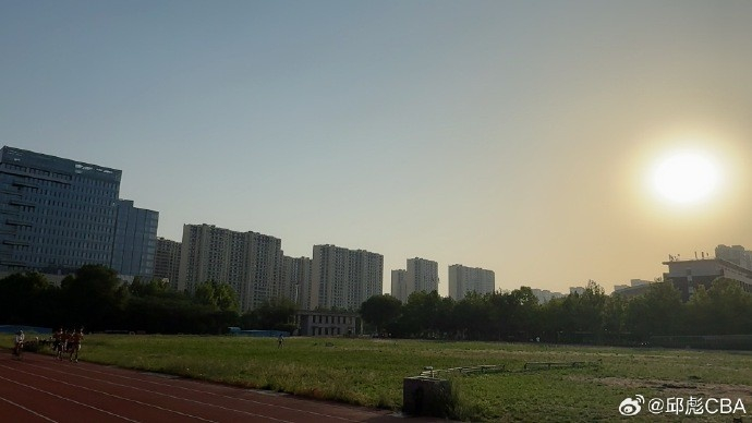 直播吧5月20日讯 山东男篮主教练邱彪晒出球队在田径场的晨练照。