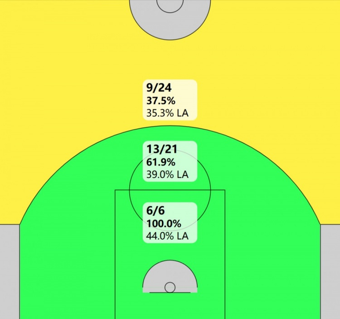 季后赛亚历山大两分球命中率高达54%,篮下命中率62%,后撤步两分跳投70%(27中19)!