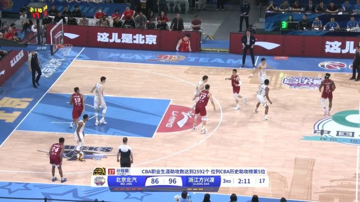 目前比赛进行到第三节,孙铭徽凭借着已经送出的8次助攻将自己的个人生涯总助攻数提升到2592次,成功超越刘炜升至CBA历史第五位。