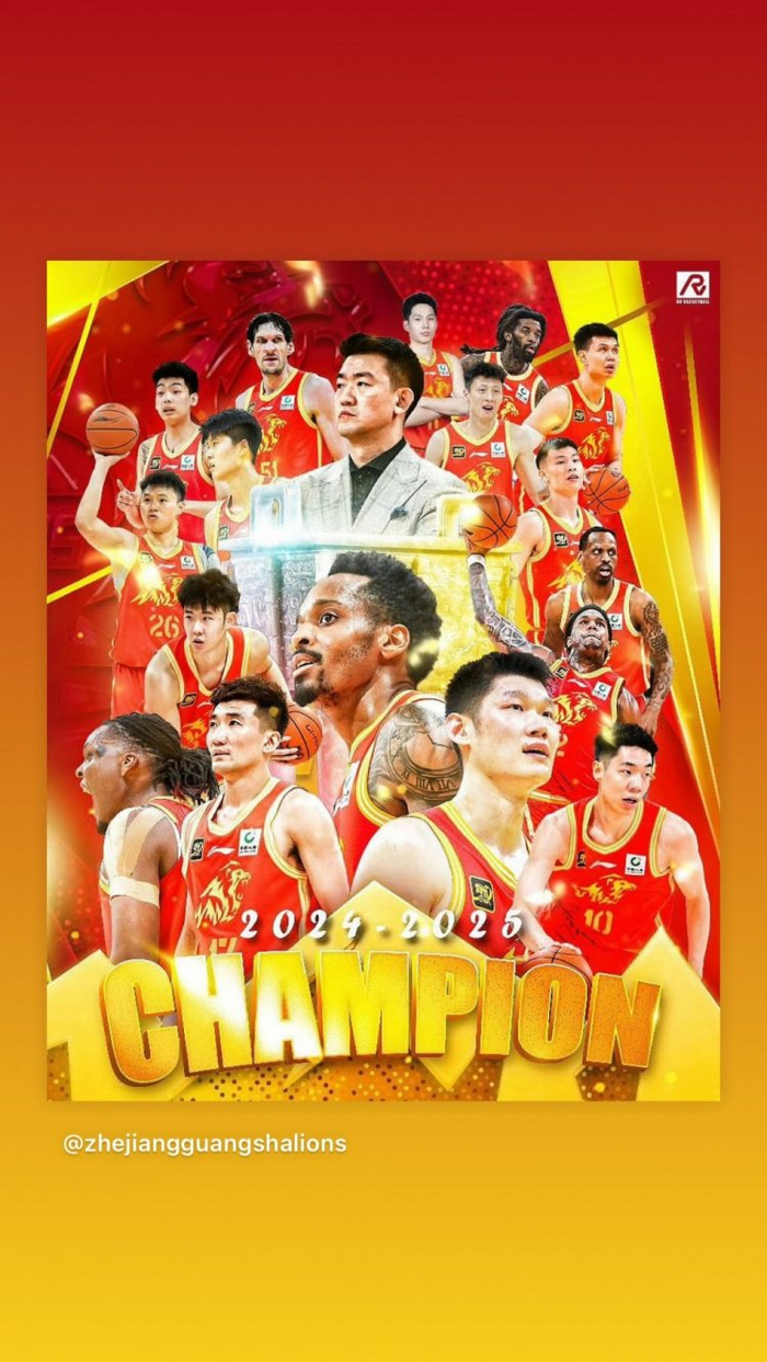 赛后,此前效力于广厦男篮多年的林志杰更新个人社媒,晒照恭喜老东家夺冠。