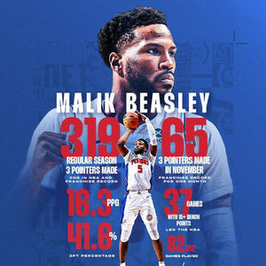 直播吧5月21日讯 活塞官推今日晒图,发布了球队射手比斯利的几项数据海报。