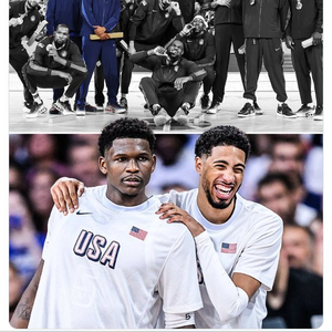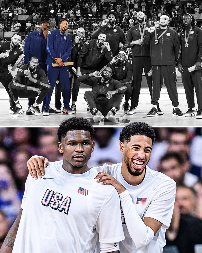 去年巴黎奥运会美国男篮12人名单:詹姆斯、库里、杜兰特、浓眉、恩比德、塔图姆、布克、朱-霍勒迪、安东尼-爱德华兹、哈利伯顿、阿德巴约、德里克-怀特;