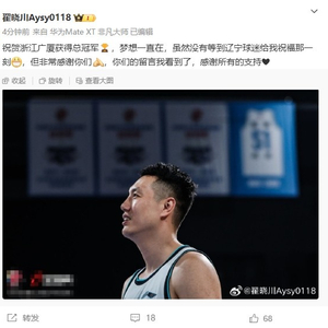今天,北京前锋翟晓川更博祝贺广厦,他写道:“祝贺浙江广厦获得总冠军🏆,梦想一直在,虽然没有等到辽宁球迷给我祝福那一刻😁,但非常感谢你们,你们的留言我看到了,感谢所有的支持❤ 。”
