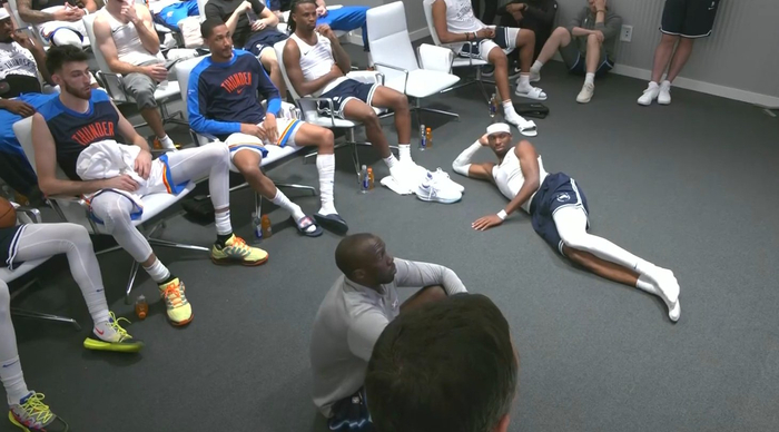 这白丝~雷霆赛前开会 亚历山大妖娆躺地上