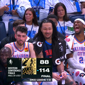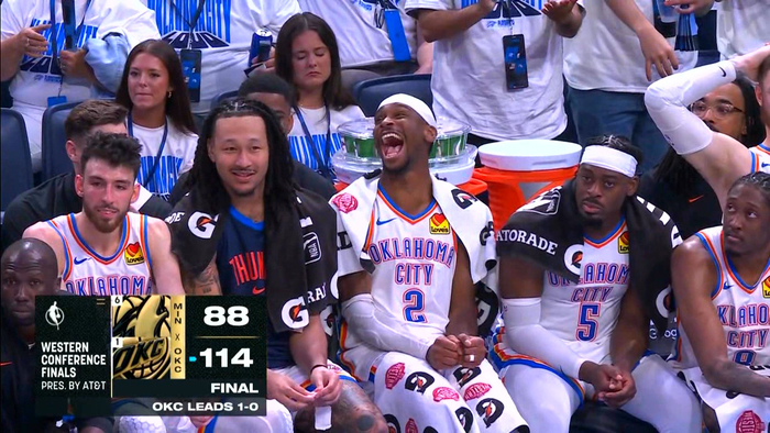 看给你高兴的!雷霆大胜森林狼 SGA场边张开血盆大口乐开花