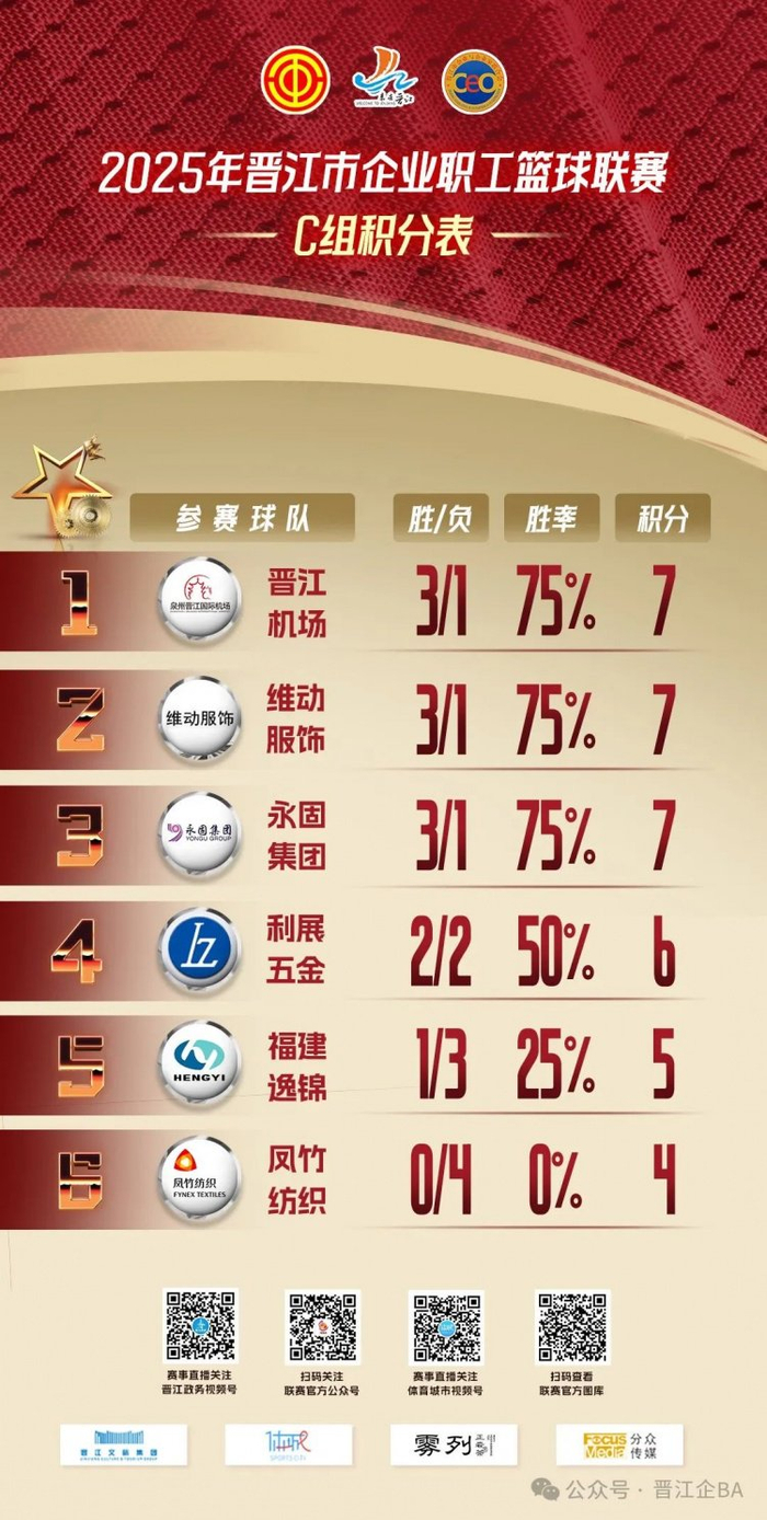 今天(5月21日)晚上,2025年晋江市企业职工篮球联赛(简称“晋江企BA ”)C、D组第一阶段小组赛将迎来收官之战。谁能突出重围,顺利出线?让我们共同期待今晚各球队的精彩表现,也欢迎广大球迷朋友们到现场或在线上为自己喜欢球队呐喊助威!