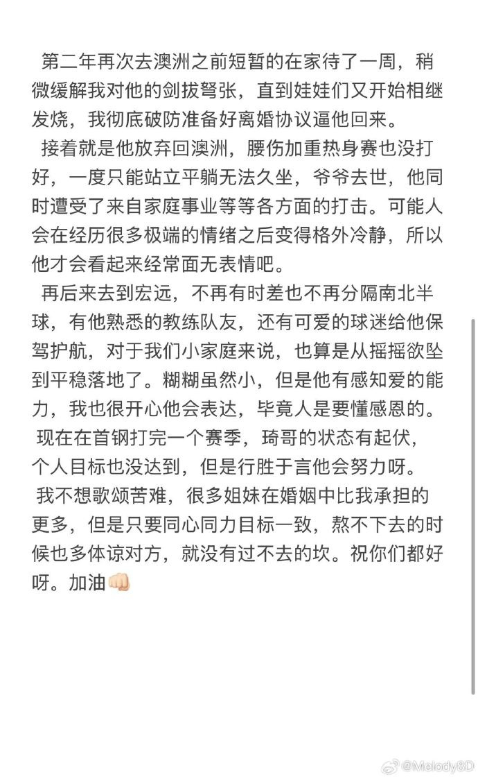 直播吧5月22日讯 昨天,周琦的妻子更新社媒,分享了二人此前的故事。