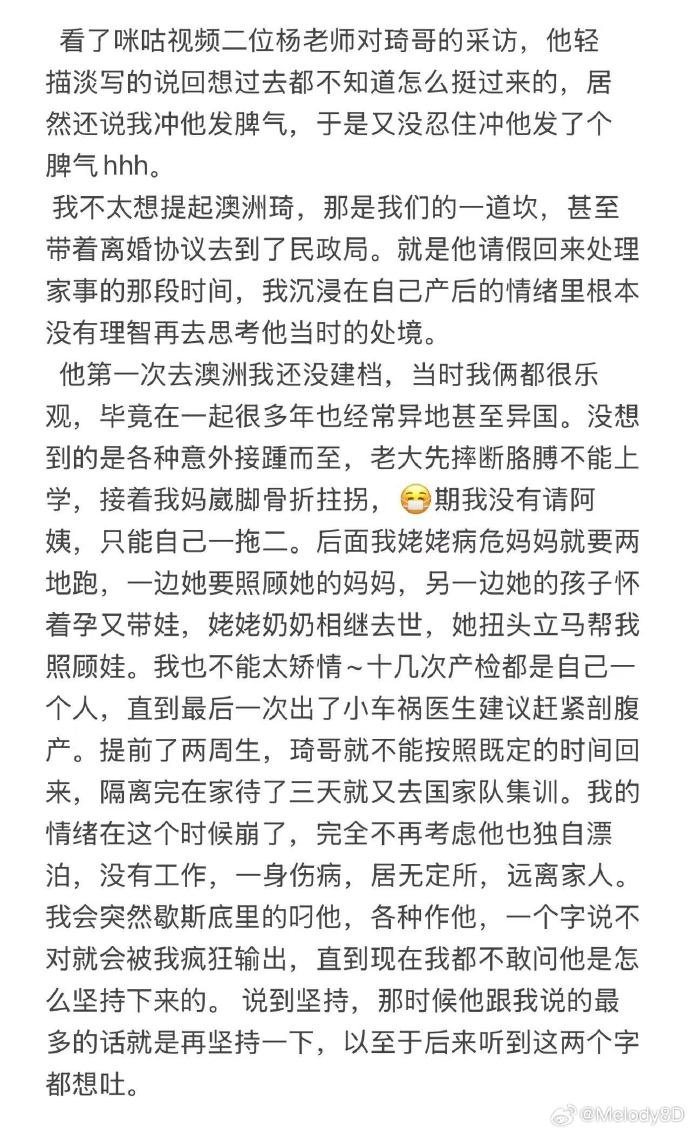 周琦妻子:澳洲琦是道坎 曾带离婚协议去民政局 突然歇斯底里骂他