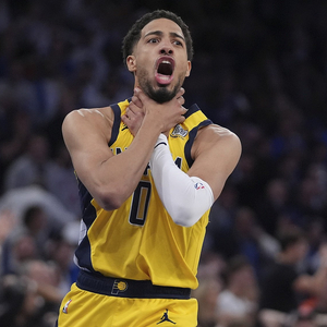 哈利伯顿踩线弹筐绝平,随后锁喉庆祝,一球致敬三人(杜兰特+小卡+米勒)