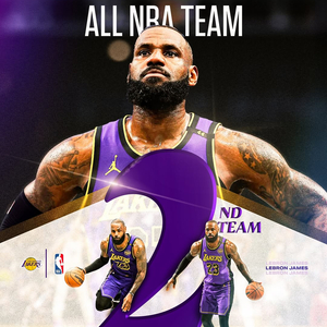 直播吧05月24日讯 NBA官方今日公布了本赛季的最佳阵容名单,其中湖人球星詹姆斯入选第二阵容。