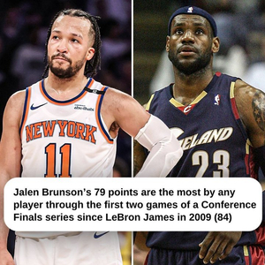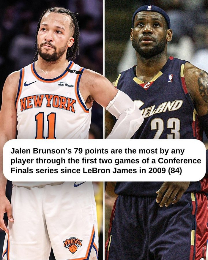 布伦森在系列赛前两场合砍79分,是2009年的詹姆斯(84分)以来的分区决赛前两场的最高分,09年东决,詹姆斯前两场分别砍下49分和35分。