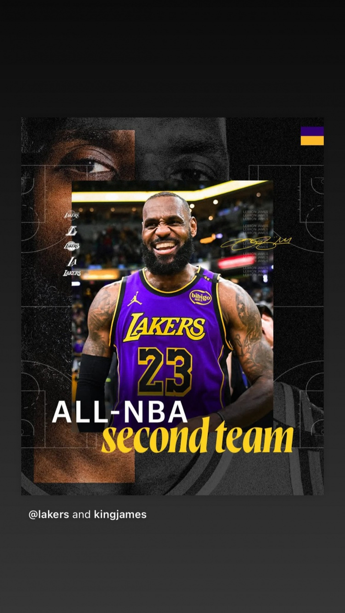 今日詹姆斯更新IG动态再次晒出自己入选第二阵容的多张海报。