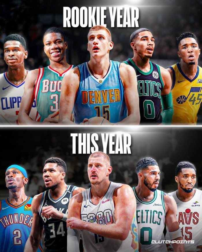 赛季最佳一阵和新秀年对比:字母体型变化最大 SGA米切尔换队