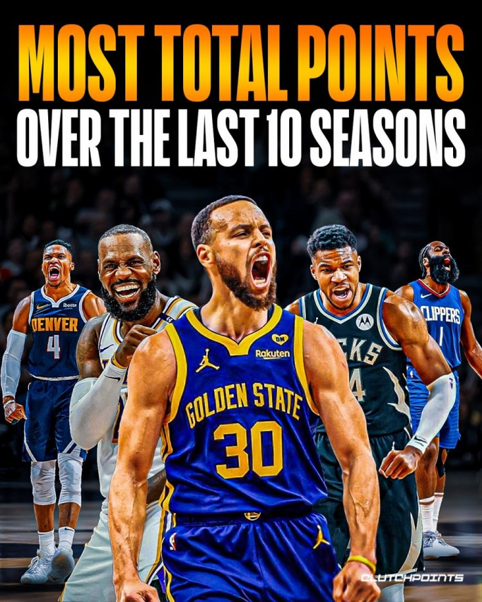 NBA近10年总得分榜:字母高居榜首 詹库分列四五 约基奇威少七八