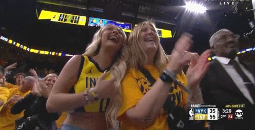 很靓哦😍哈利伯顿追身三分+抢断反击单臂暴扣 女友场边兴奋庆祝