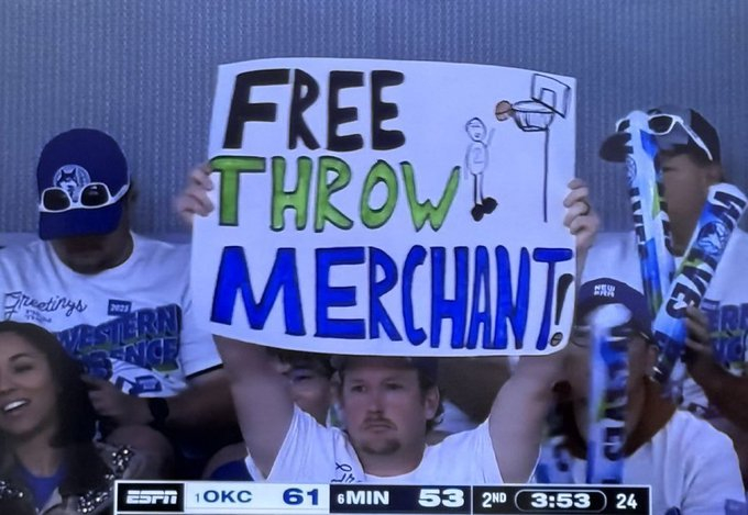 干扰一波森林狼主场球迷举牌:亚历山大“碰瓷大师”!