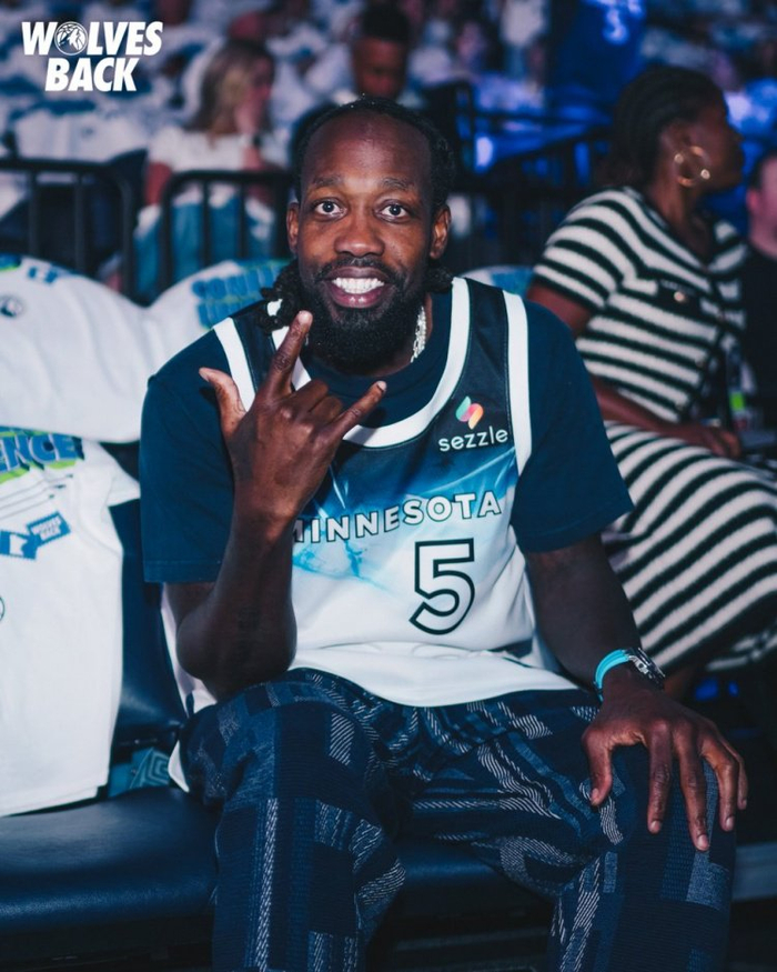 贝弗利身穿华子5号球衣场边助威!森林狼官方:我们💙贝弗利