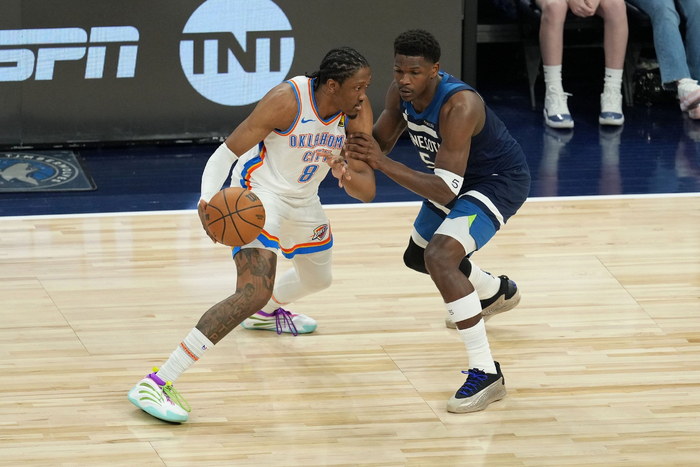 杰伦威熬过来了,常规赛他场均轰下21.6分外加5.3个篮板、5.1次助攻、1.6次抢断和0.7次封盖。攻防兼备。作为亚历山大身边的副攻手,当亚历山大被严防,杰伦威接管比赛的能力明显提升,7次单场轰下30+高分。