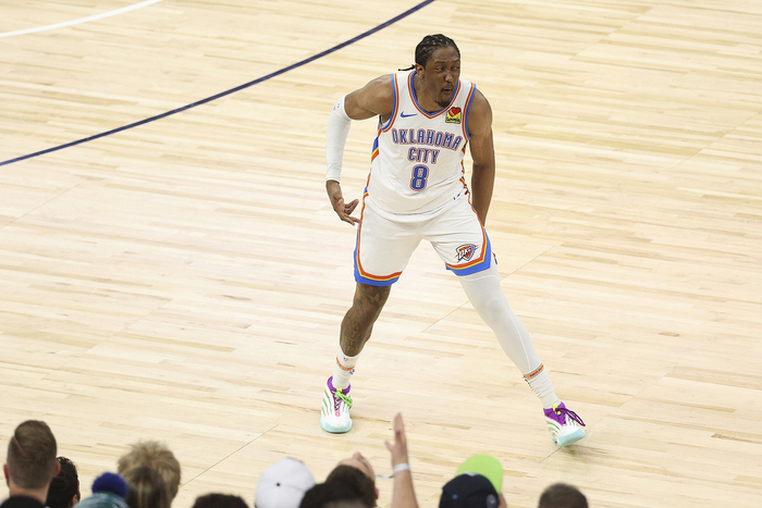 防守端,杰伦威能防守多个位置,赛季初霍姆格伦、哈尔滕施泰因因伤无法出战时,杰伦威甚至顶到五号位,杰伦威自夸“联盟只有3-4个球员会像我一样还要经常去对位阿德托昆博、文班亚马,莱昂纳德算一个”。用亚历山大的话说,雷霆打出联盟第一的防守效率,能防多个位置、对位不同类型球员的杰伦威是关键。