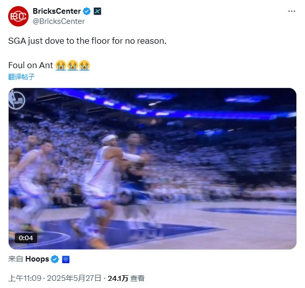 美媒:“SGA 毫无理由地倒在了地板上。”