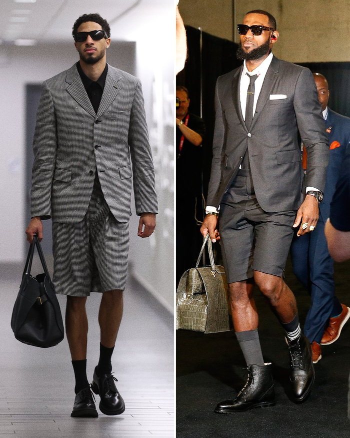 宣誓态度?👀哈利伯顿西装短裤入场 美媒晒照:18詹的气质