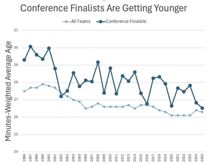 未来已来😮?分区决赛球员平均年龄仅26.5岁 NBA历史最年轻!