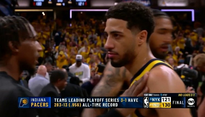 直播吧5月28日讯 东决G4,步行者130-121力克尼克斯,大比分3-1领先。